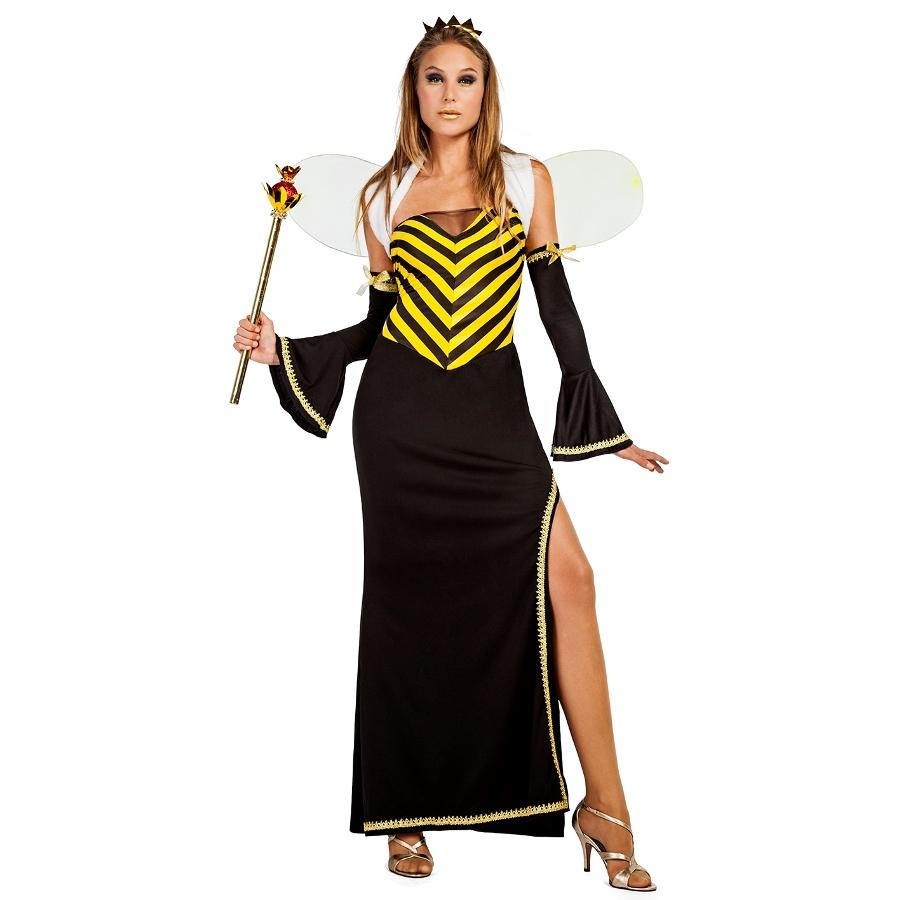 Vestido longo feminino preto e amarelo com asas e cetro