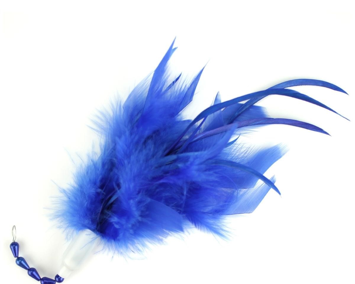 Pena decorativa azul com penas macias e pontiagudas
