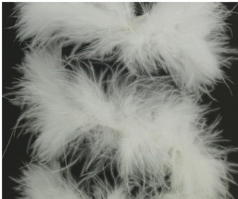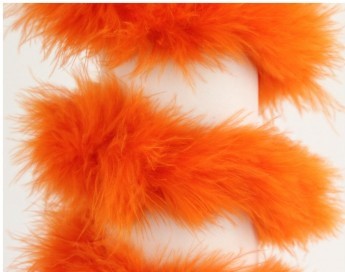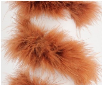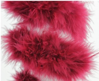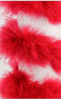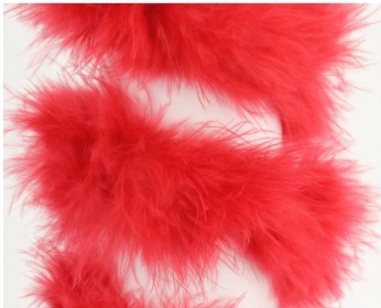 Cordão decorativo de penas vermelhas vibrantes sobre fundo branco