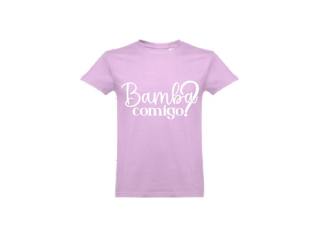 T-shirt branca com texto preto 'Bamba comigo?'