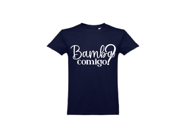 T-shirt azul escuro com texto branco Bamba comigo!