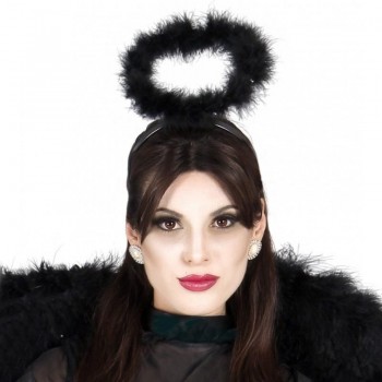 Acessório de cabeça com auréola preta de penas