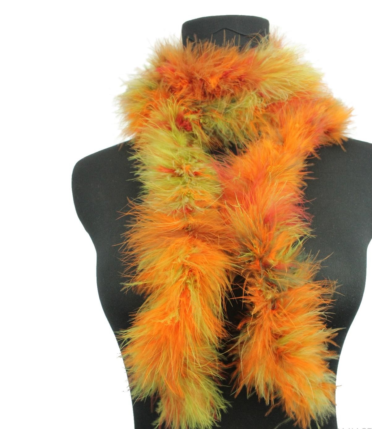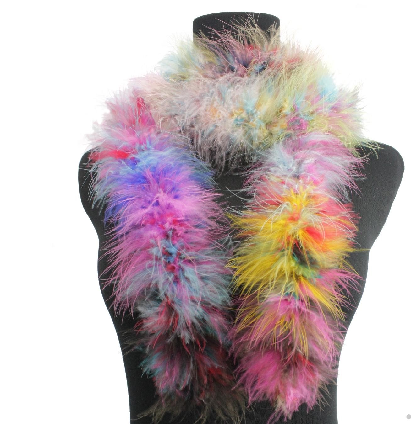 Lenço tipo boa colorido em penas falsas sobre manequim preto
