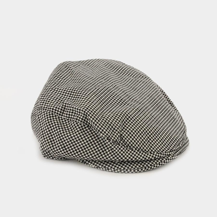 Boina preta e branca com padrão pied-de-poule sobre fundo branco