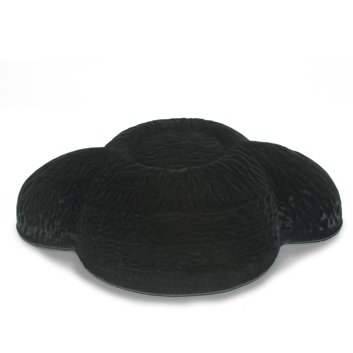 Almofada preta arredondada com textura aveludada