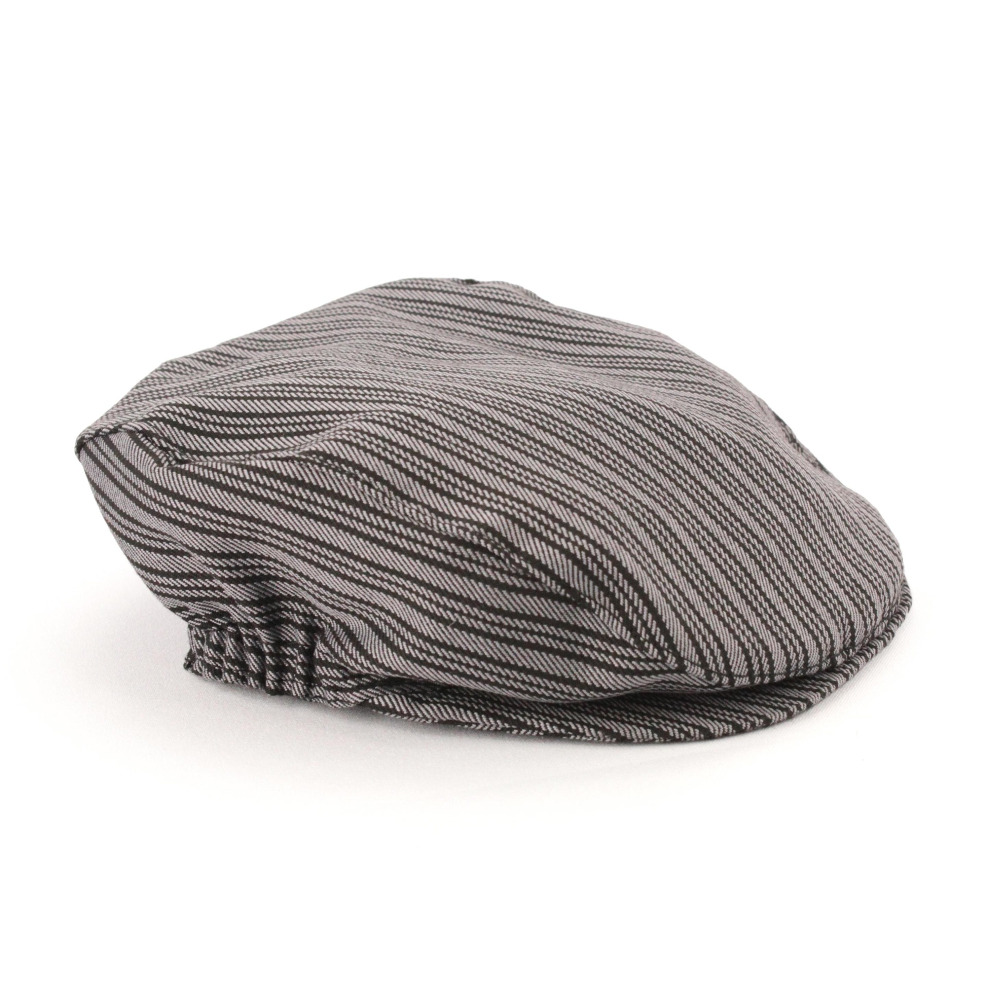 Boina gavroche cinza listrada preta sobre fundo branco