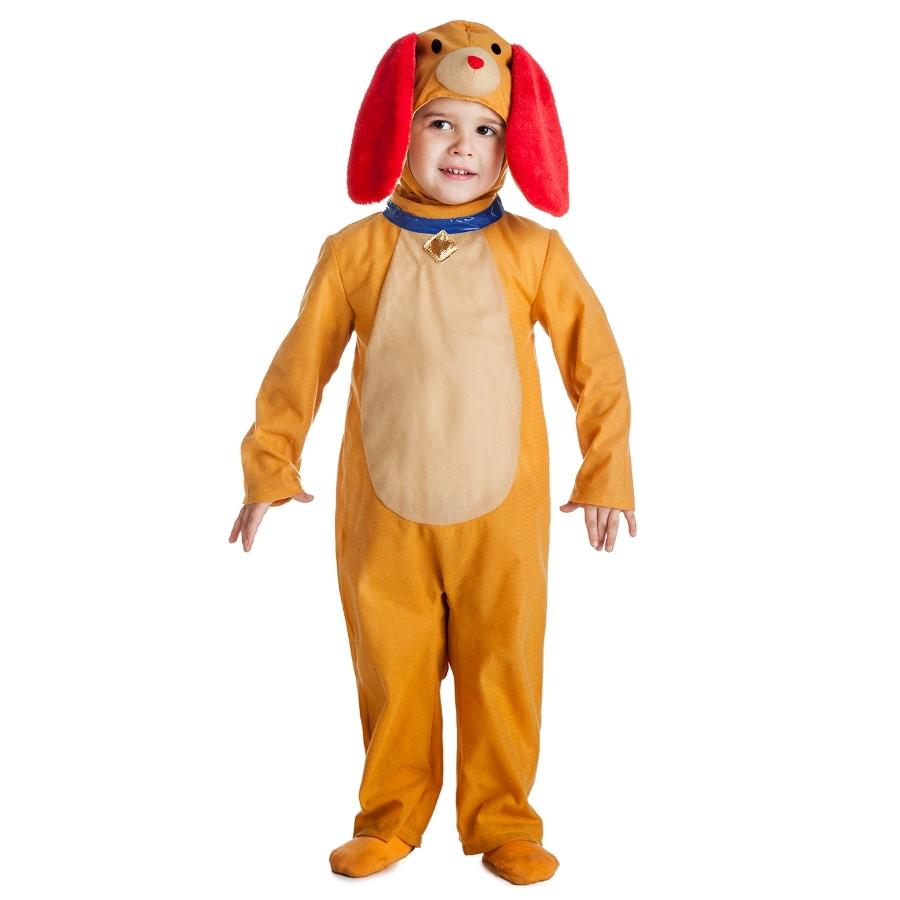 Fato criança cão castanho com capuz e orelhas vermelhas