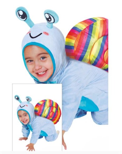 Fato de caracol para criança azul claro com concha colorida