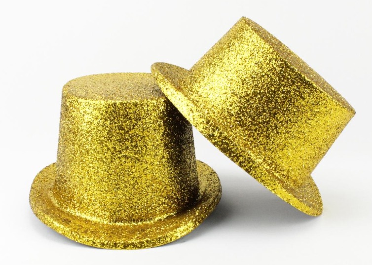 Dois chapéus de cartola dourados com purpurina