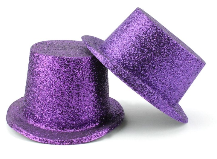 Dois chapéus tipo cartola roxos com glitter