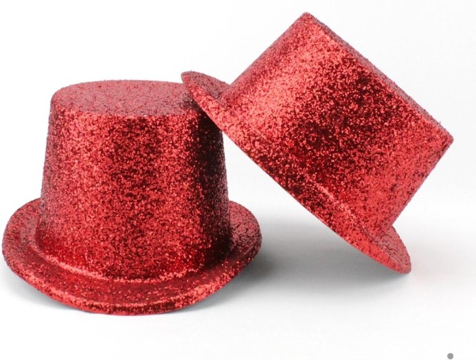Dois chapéus cartola vermelhos com purpurina