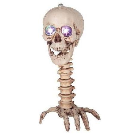 Caveira decorativa iluminada com base de mão esquelética