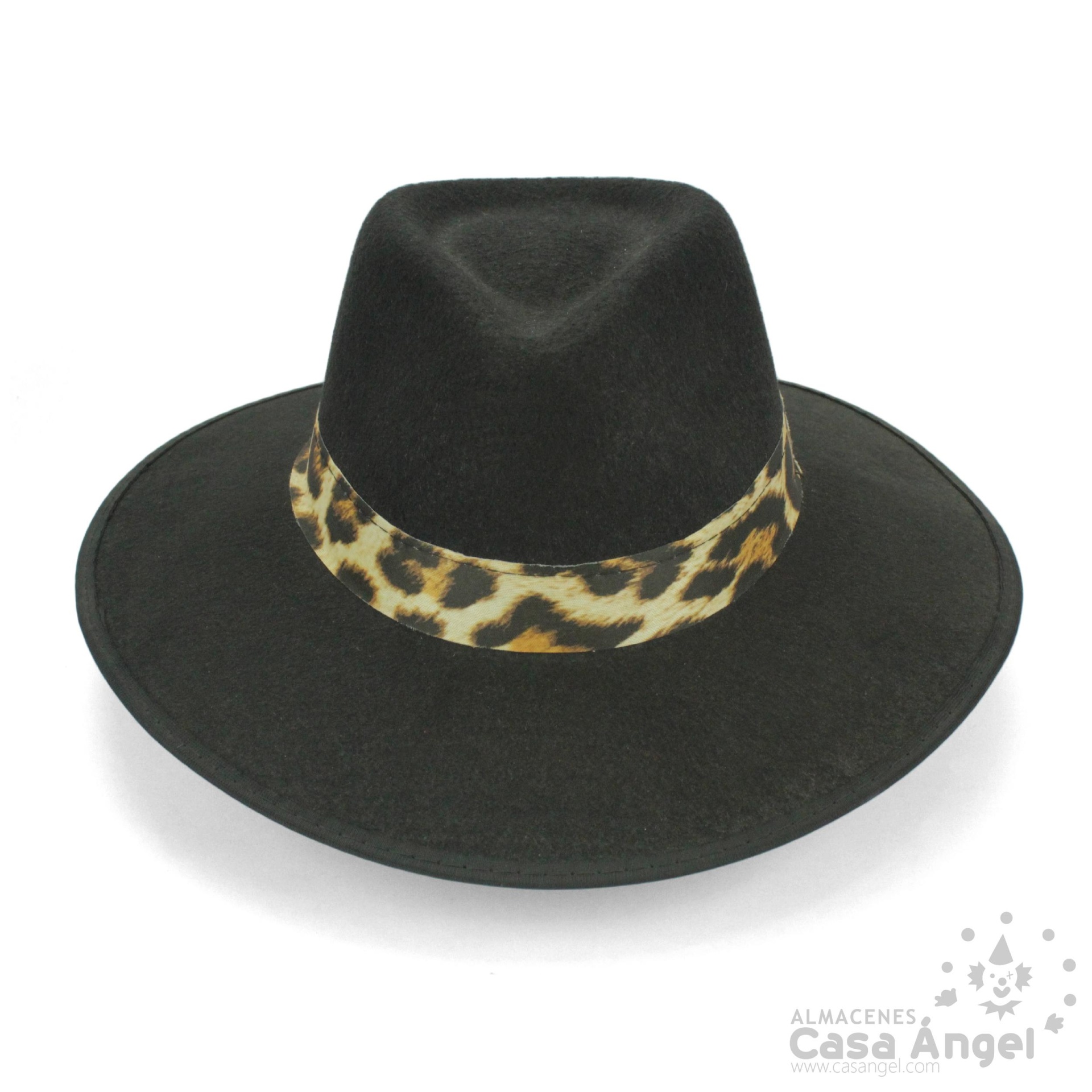 Chapéu preto de feltro com faixa animal print