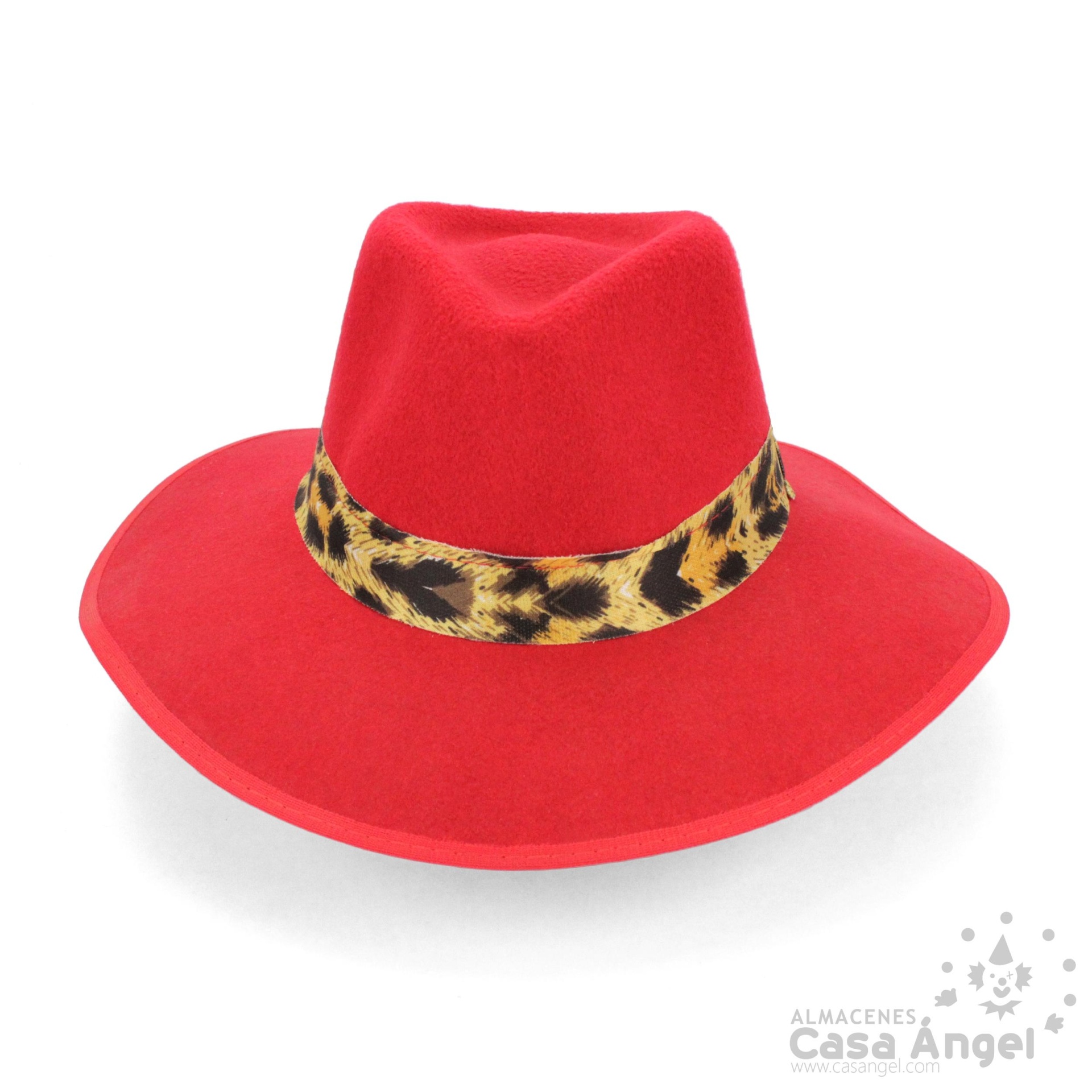 Chapéu vermelho com faixa estampada de pele de leopardo