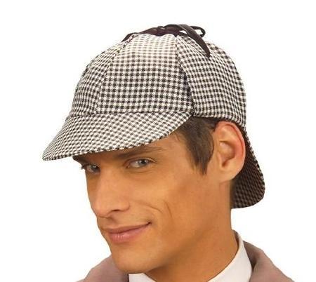 Homem a usar boné estilo Sherlock Holmes em tecido xadrez preto e branco