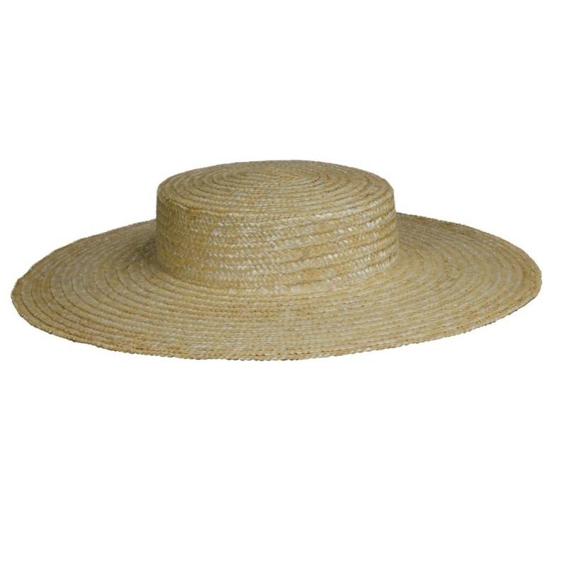 Chapéu de palha bege com aba larga e coroa redonda