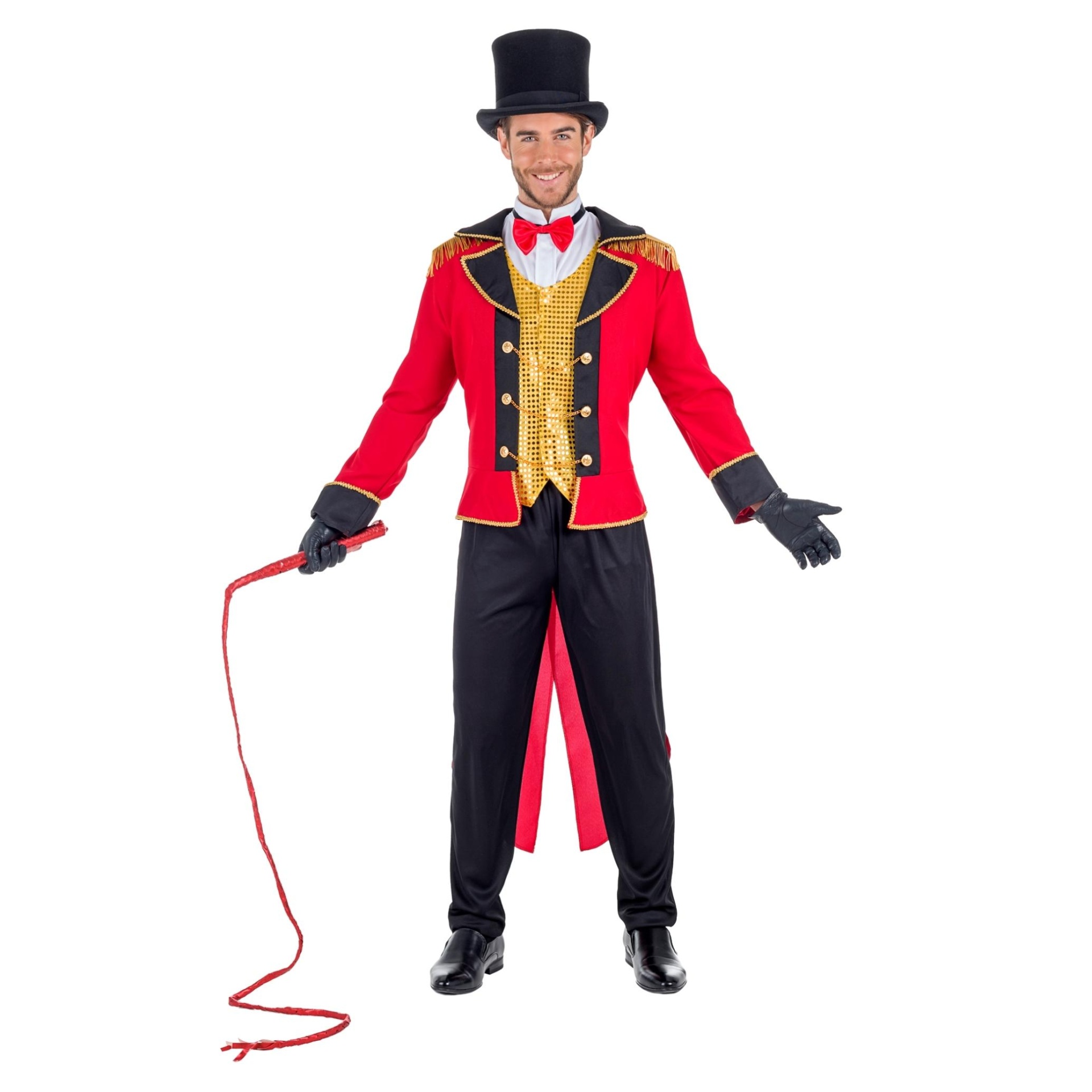 Homem vestido com traje de mestre de cerimónias colorido e cartola