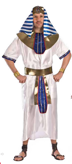 Fato egípcio branco com detalhes dourados e azuis