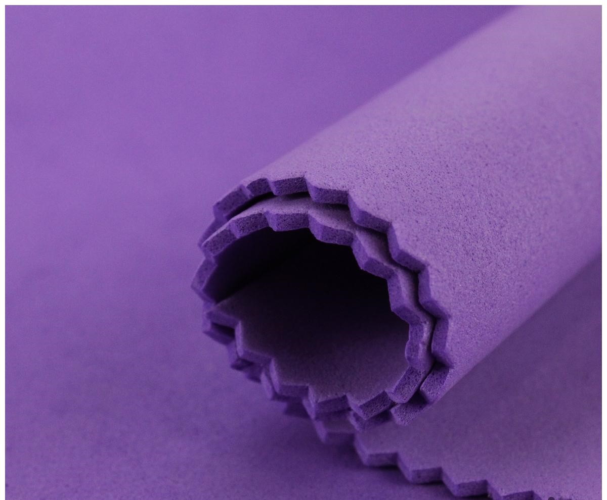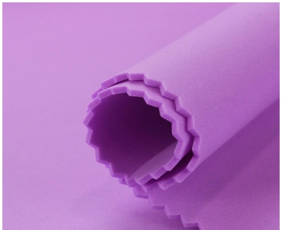 Tapete ou espuma roxa enrolada com bordas recortadas em ziguezague