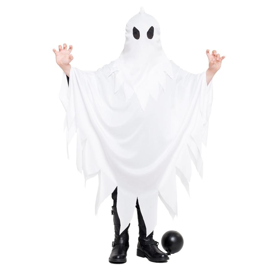 Fantasia de fantasma branca com olhos pretos para criança