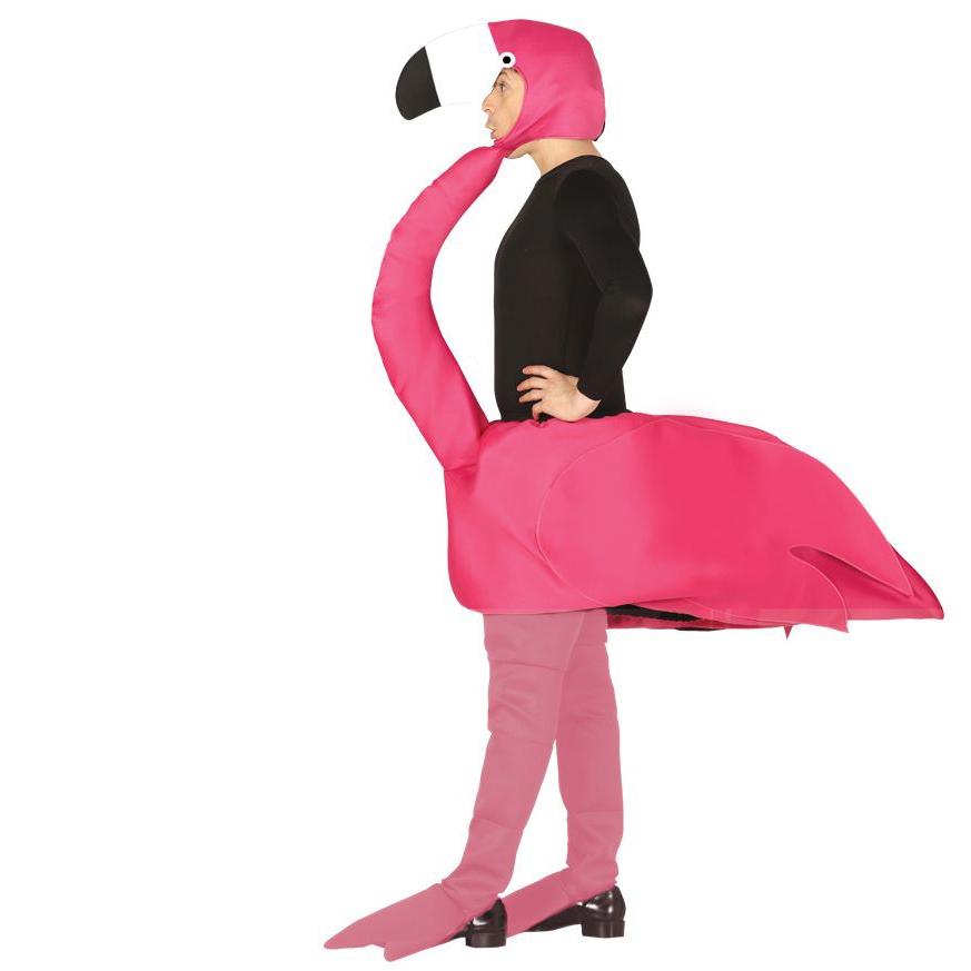 Fantasia inflável cor-de-rosa de flamingo com pescoço e cabeça em traje completo