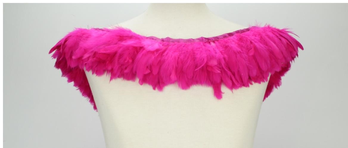 Estola ou gola de penas rosa sobre manequim creme