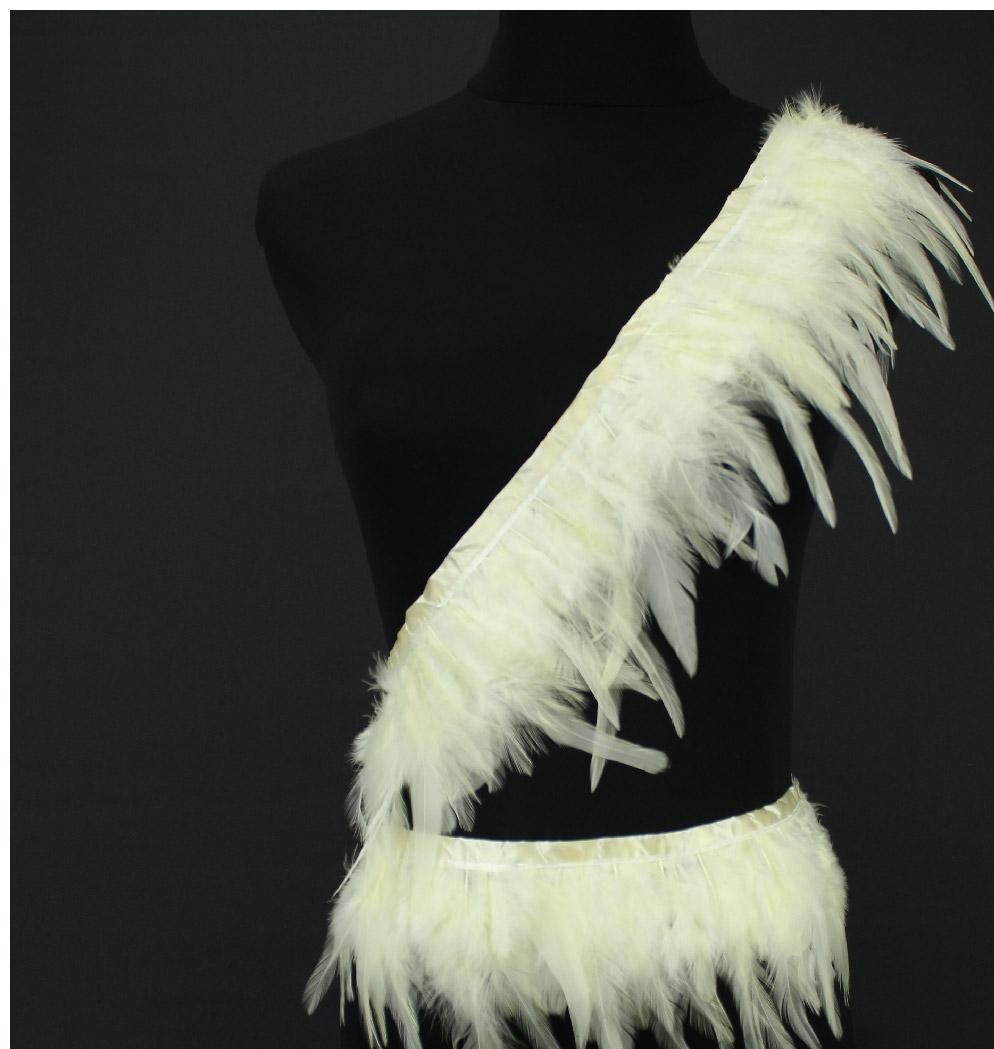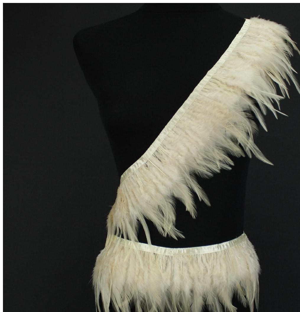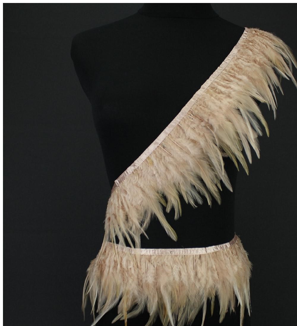 faixa decorativa com penas naturais bege em manequim preto