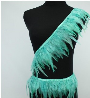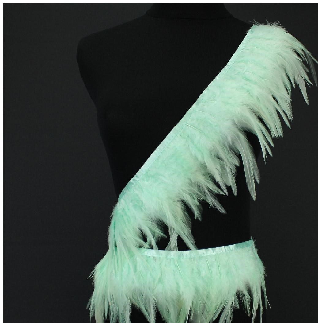 Faixa decorativa de penas verde claro num manequim preto