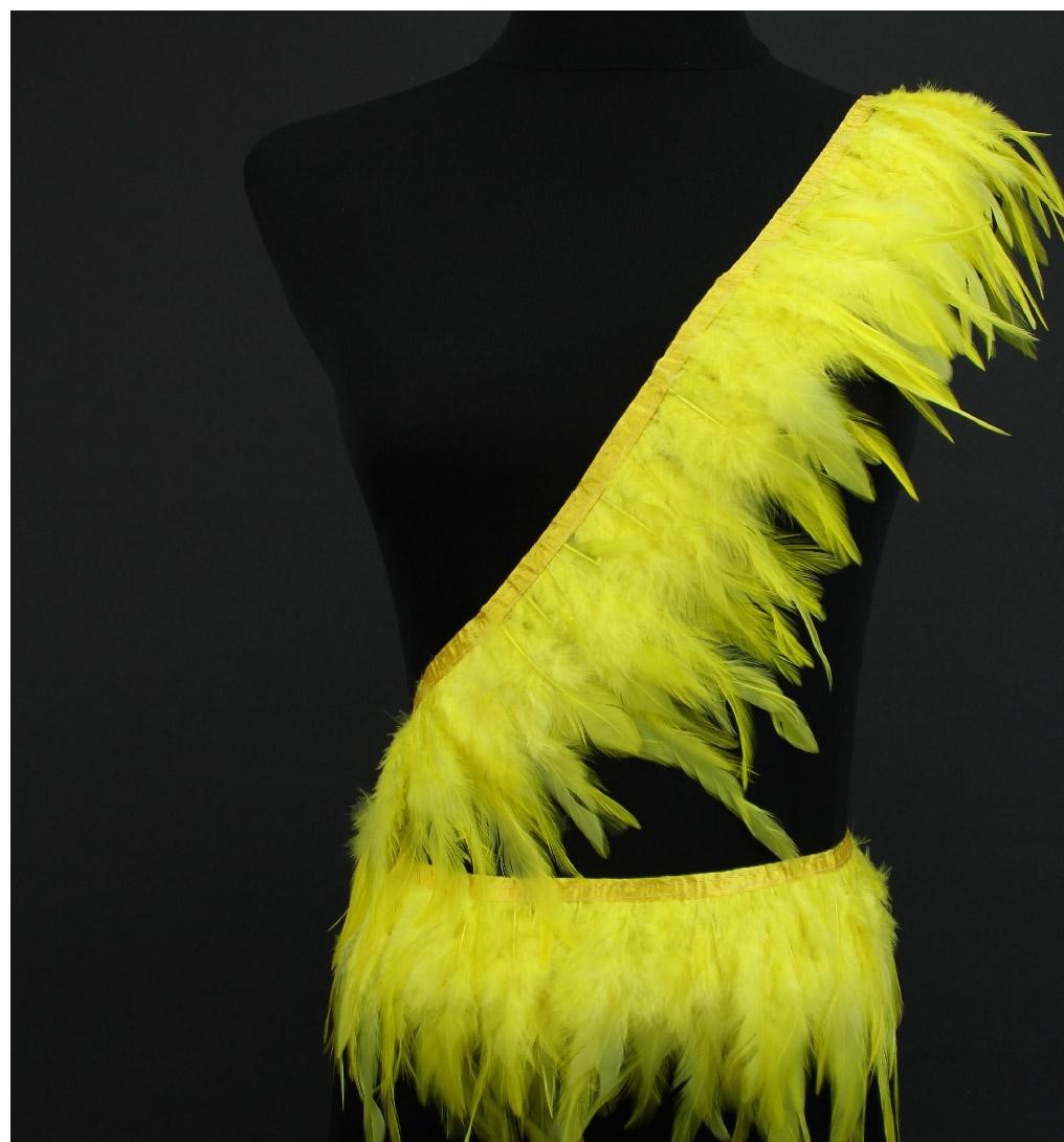 Acessório de penas amarelas fluorescentes em manequim preto