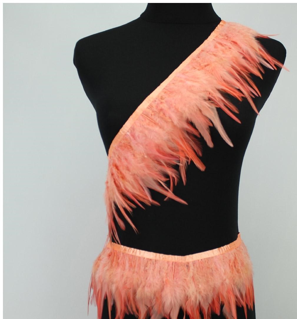 Faixa de penas cor de salmão em manequim preto