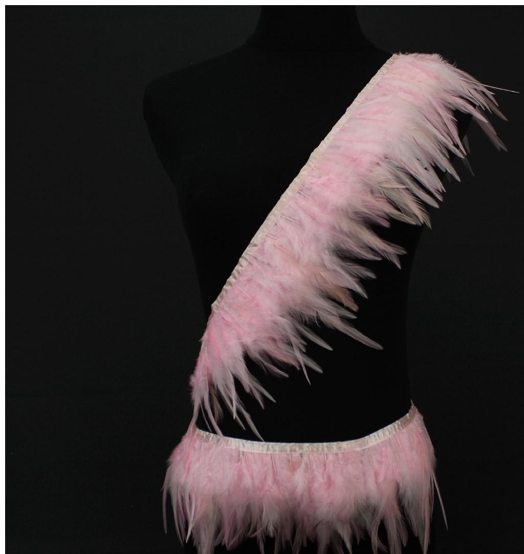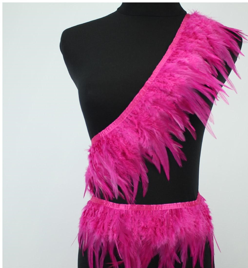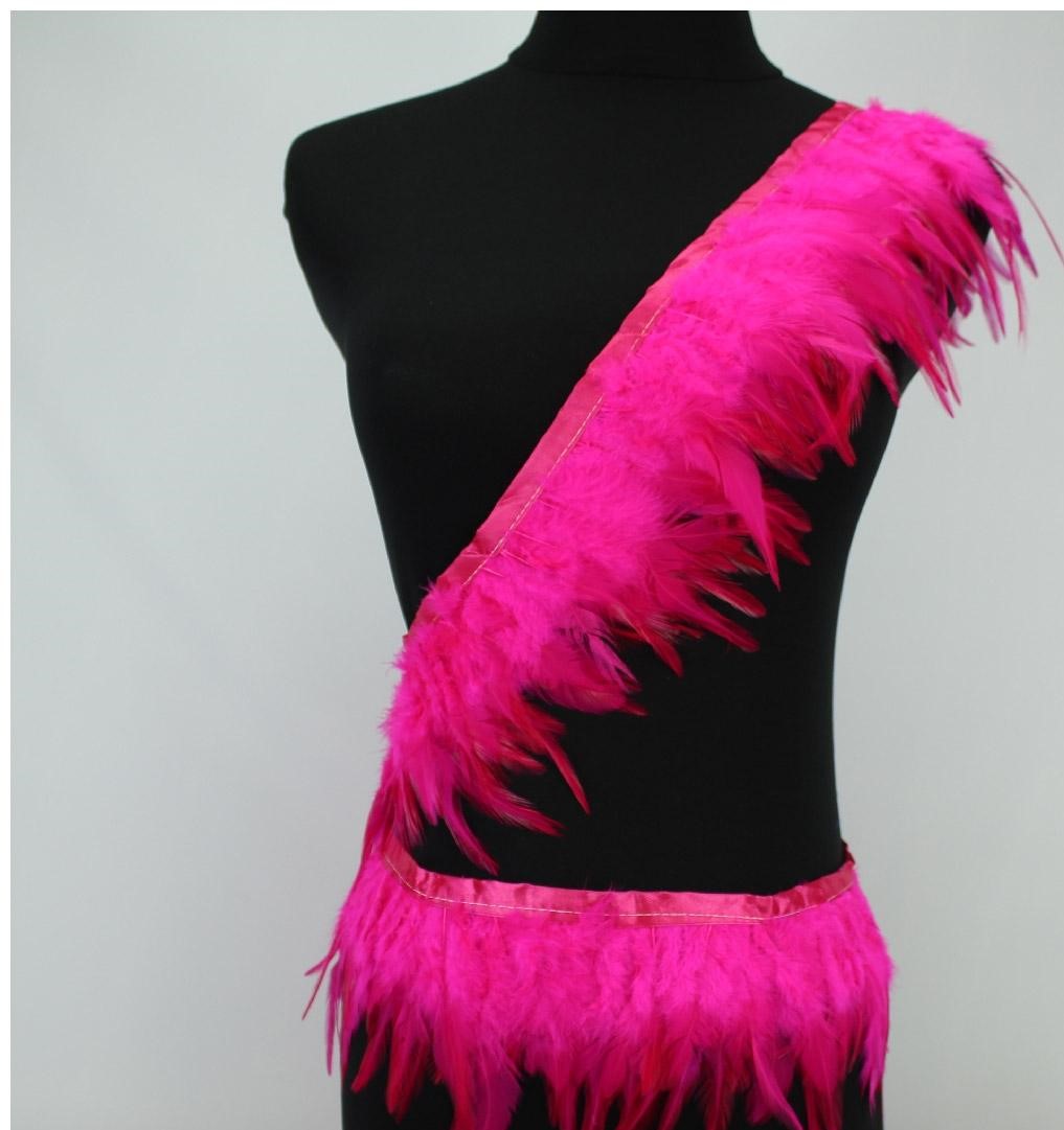 Faixa e faixa à cintura feitas de penas cor-de-rosa num manequim preto