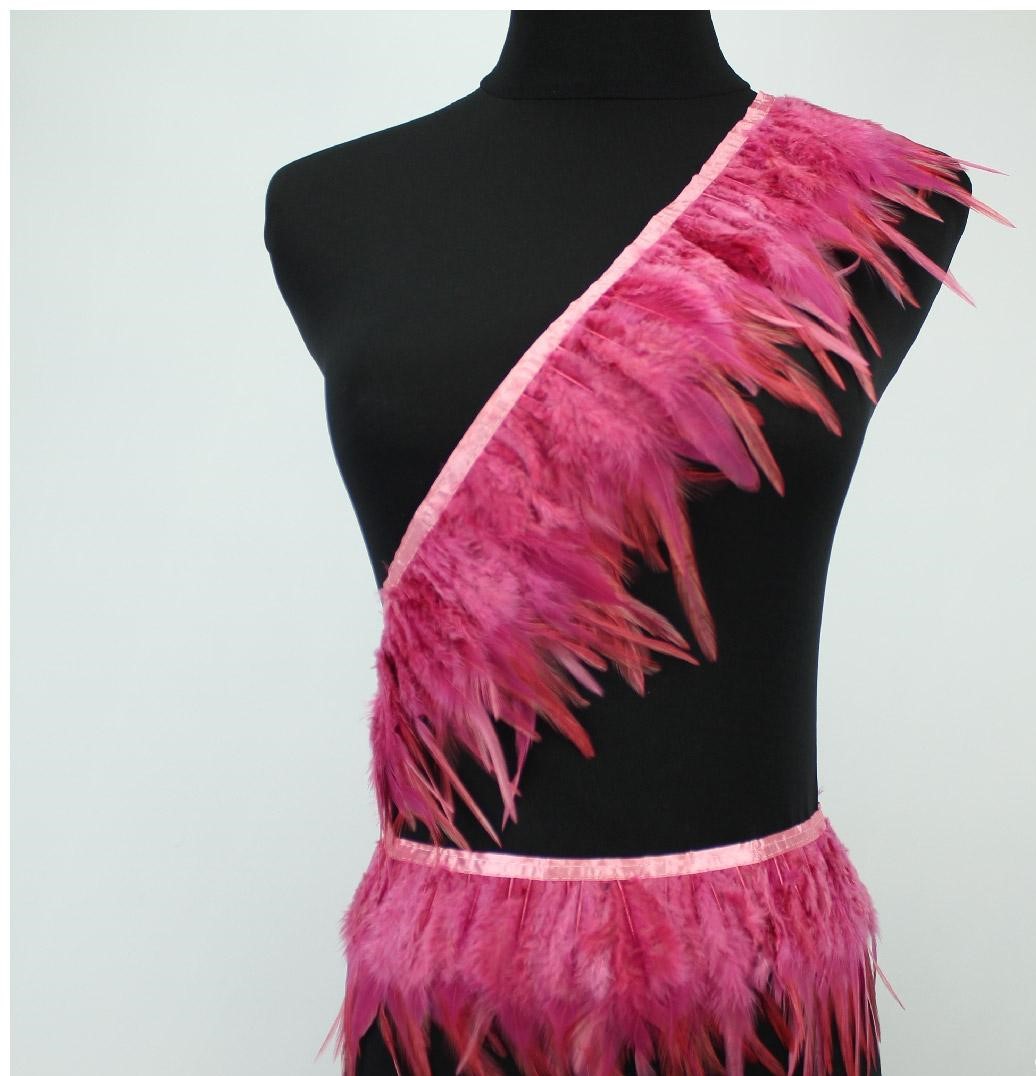 fita decorativa de plumas cor-de-rosa num manequim preto