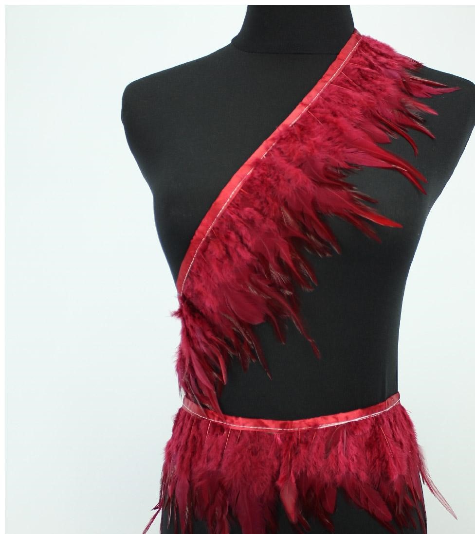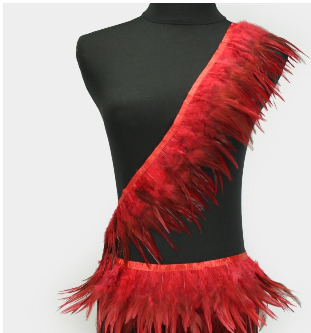 Acessório de moda em penas vermelhas sobre manequim preto