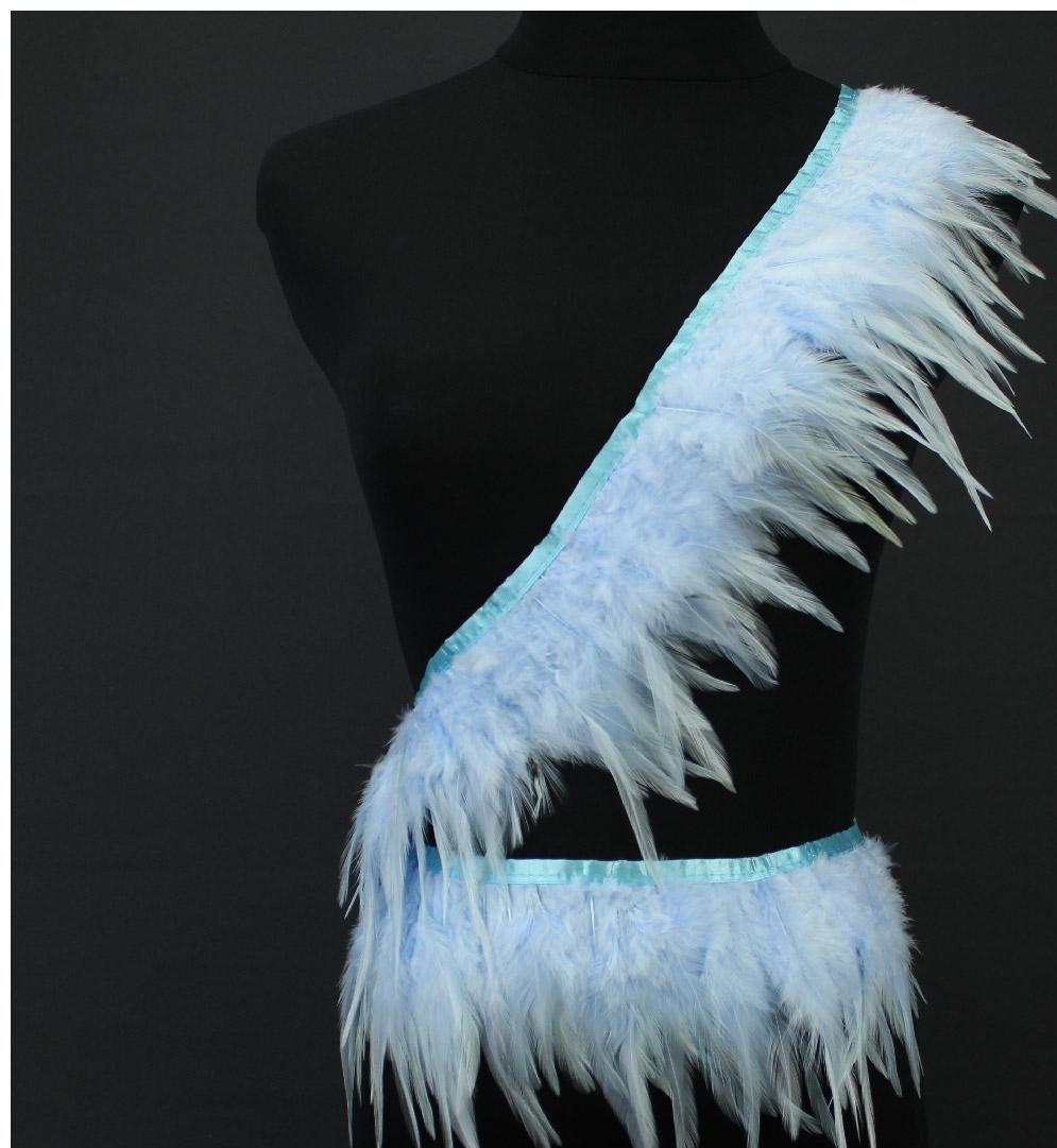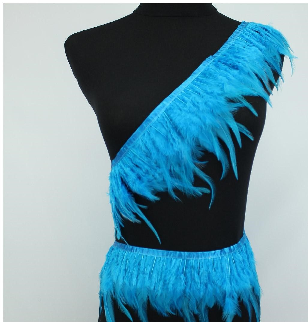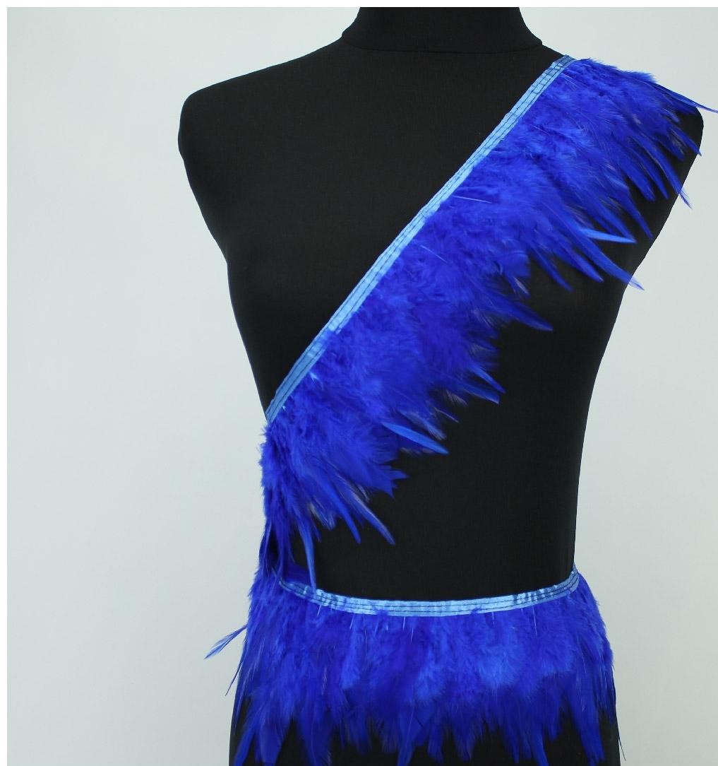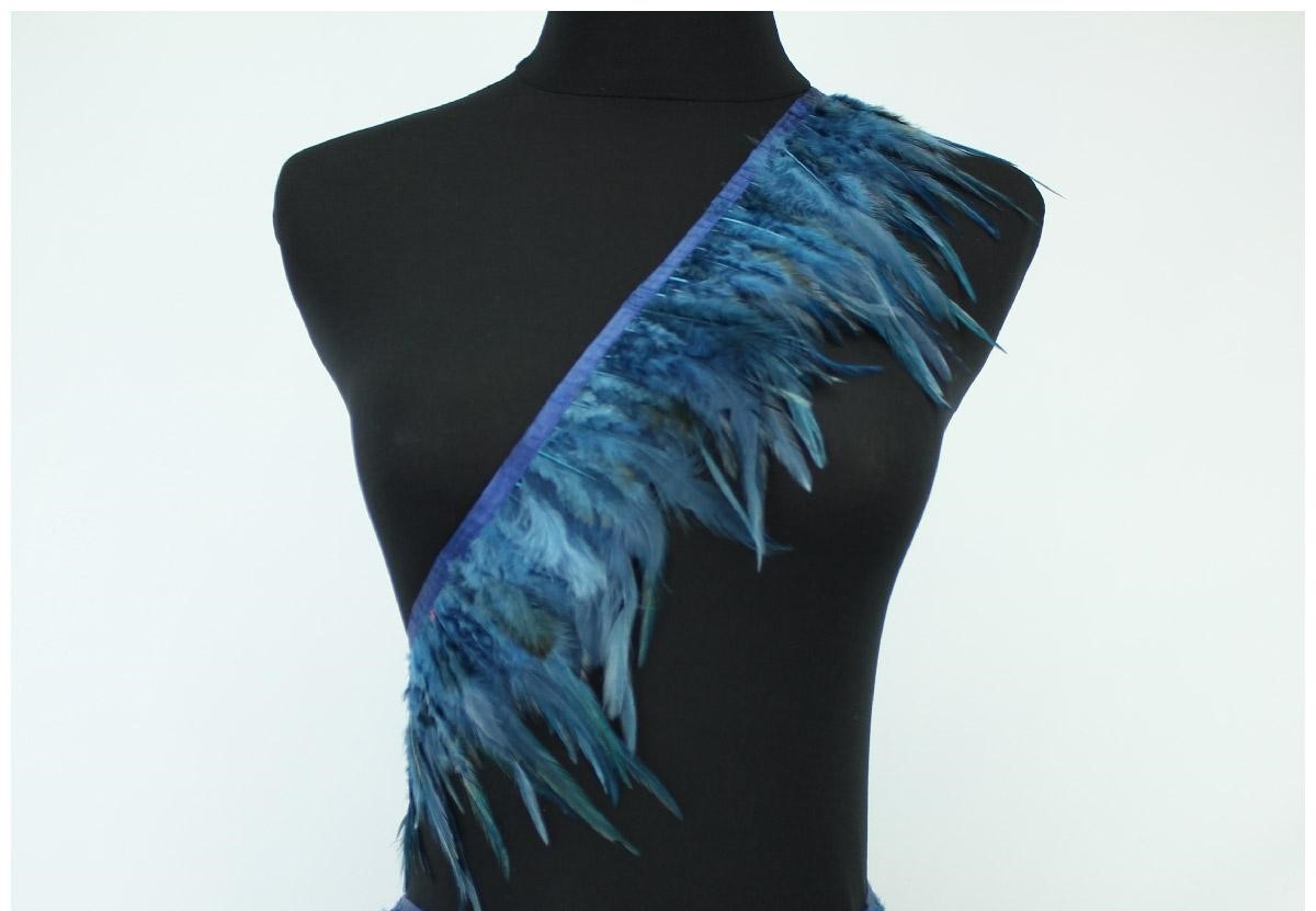 Cinto com penas azuis em diagonal no manequim preto