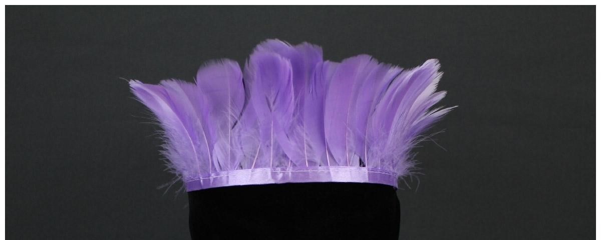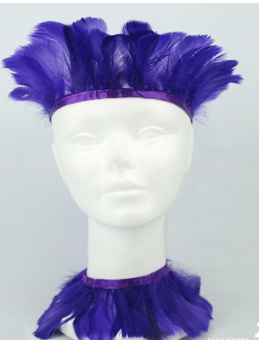 Tocado de penas roxas com faixa branca