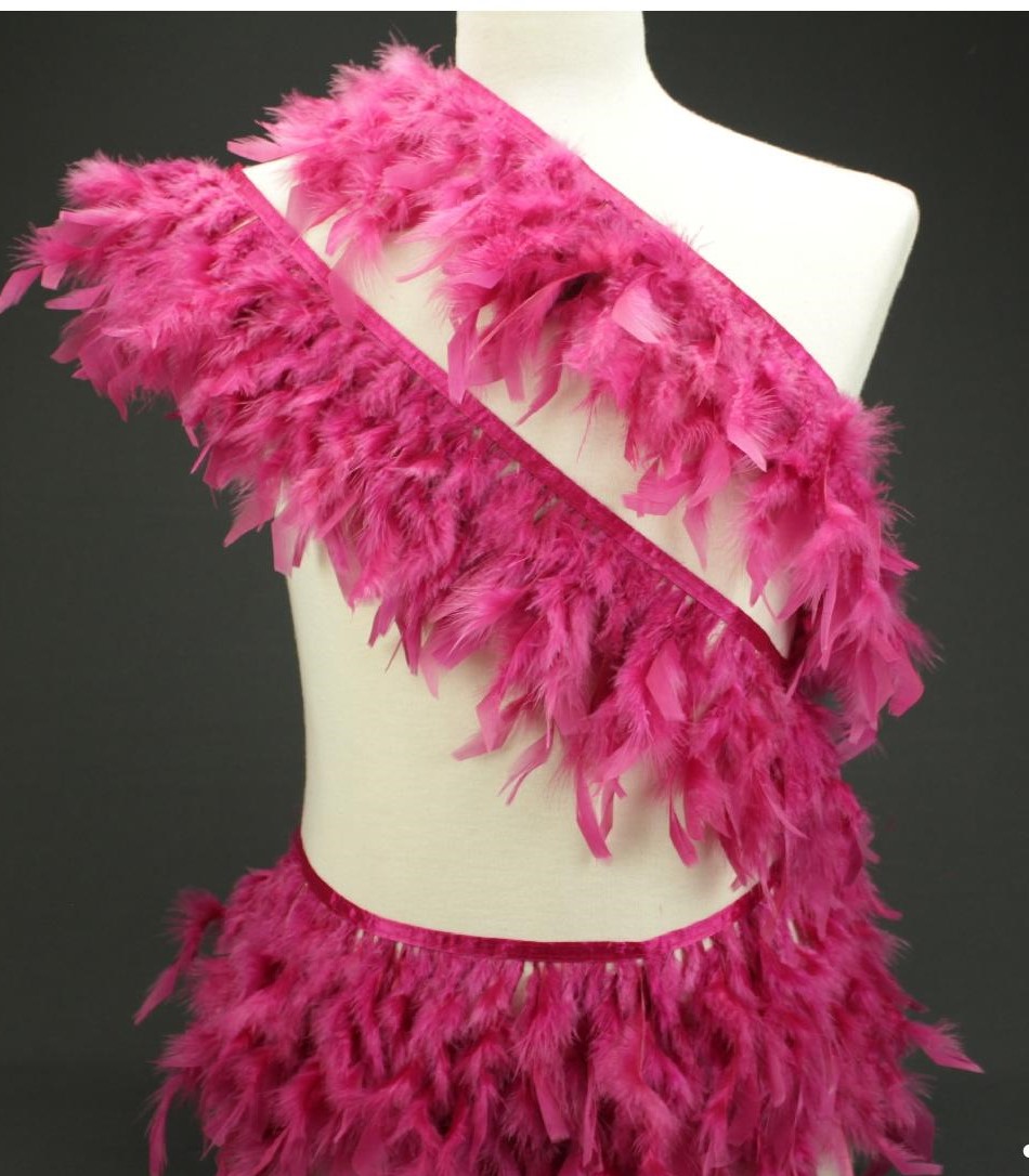 Lenço ou faixa decorativa rosa com plumas num manequim