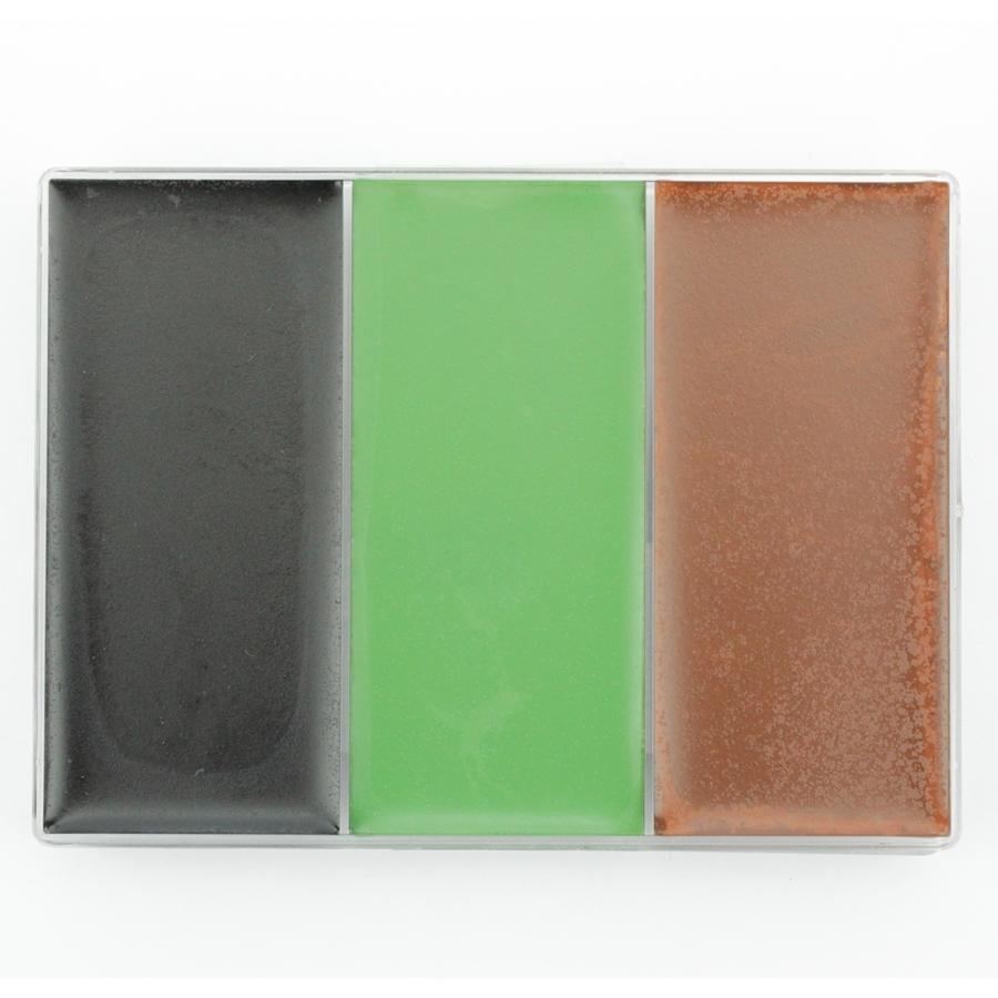 Prato retangular com três compartimentos de cerâmica colorida preto, verde e castanho