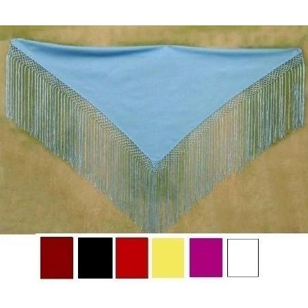 Lenço triangular azul claro com franjas longas