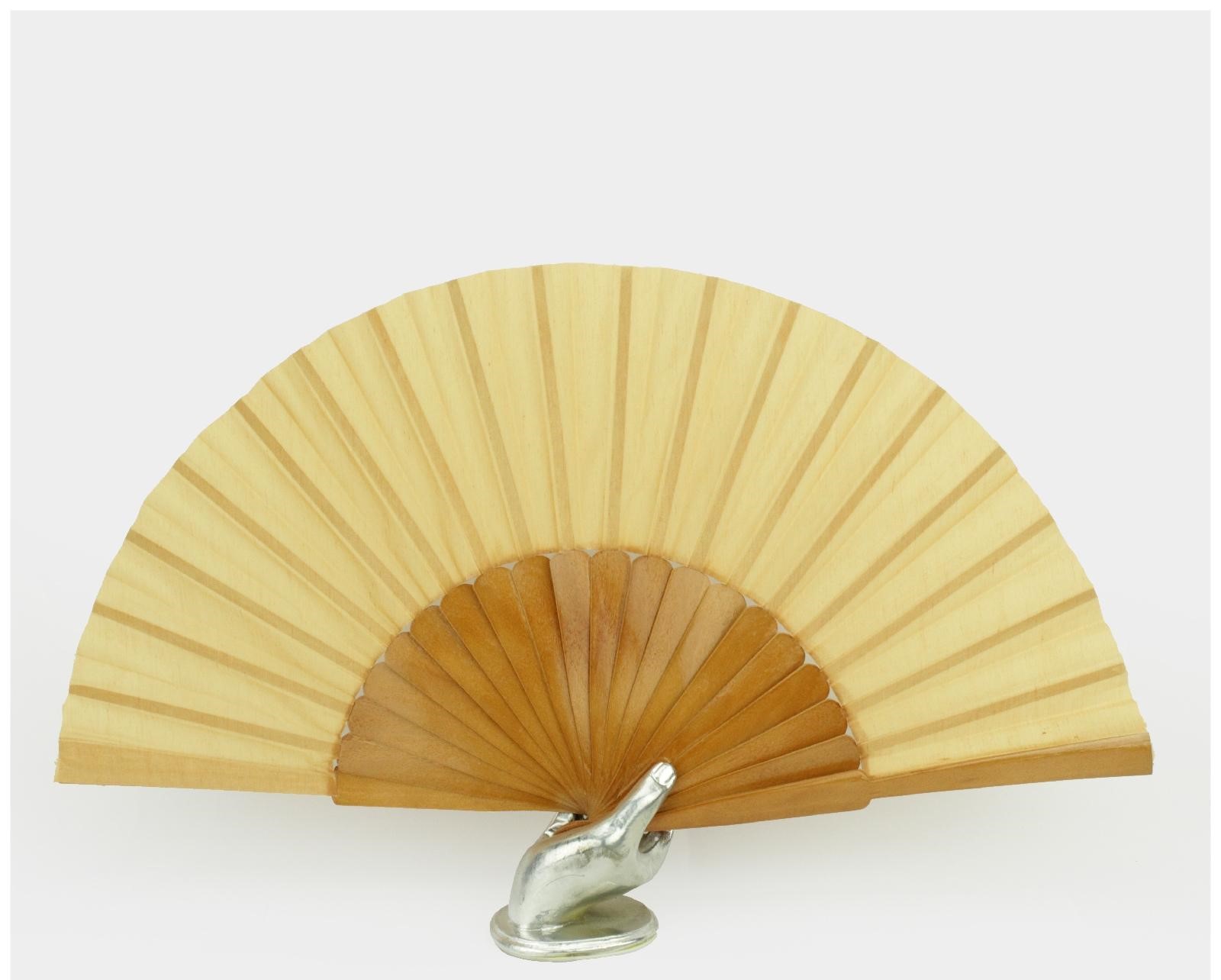 Leque de madeira com base em forma de mão