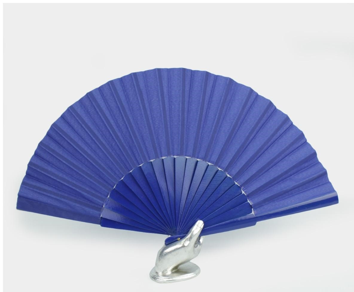 Leque dobrável azul com suporte metálico