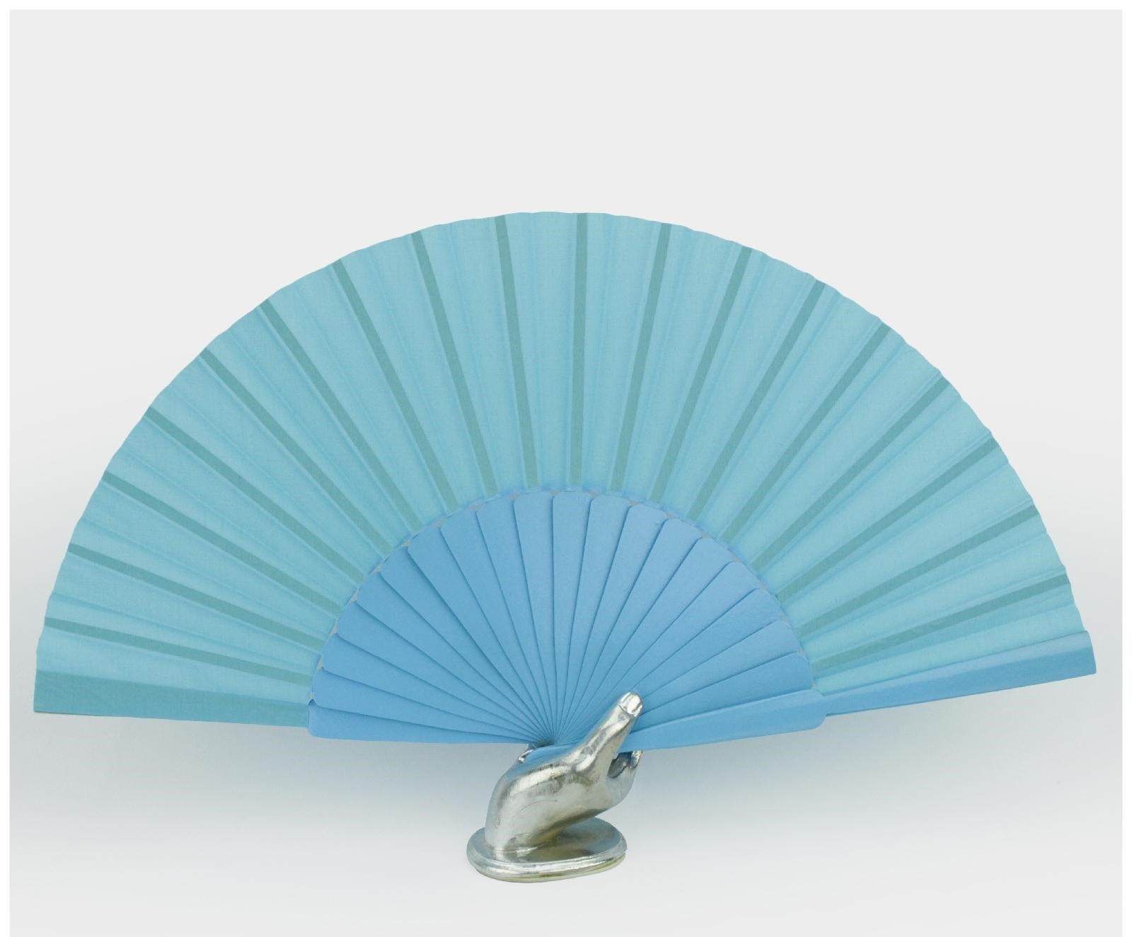 Leque azul claro com base prateada em forma de mão