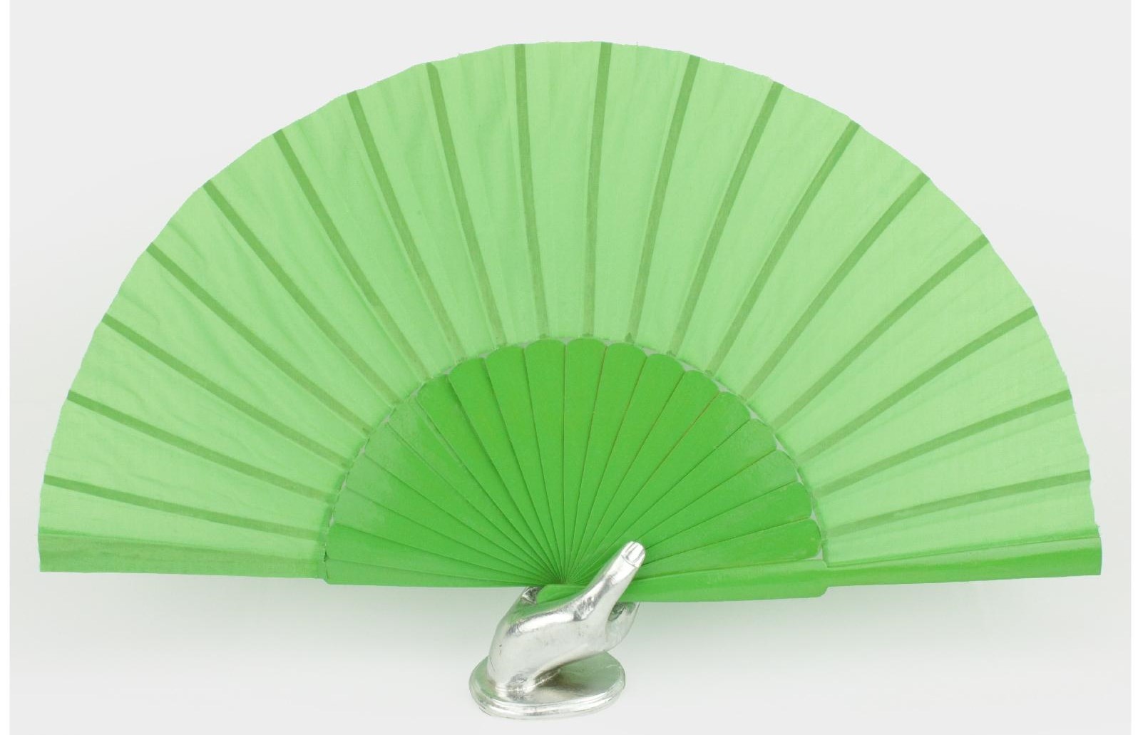 Leque verde com base prateada em forma de mão