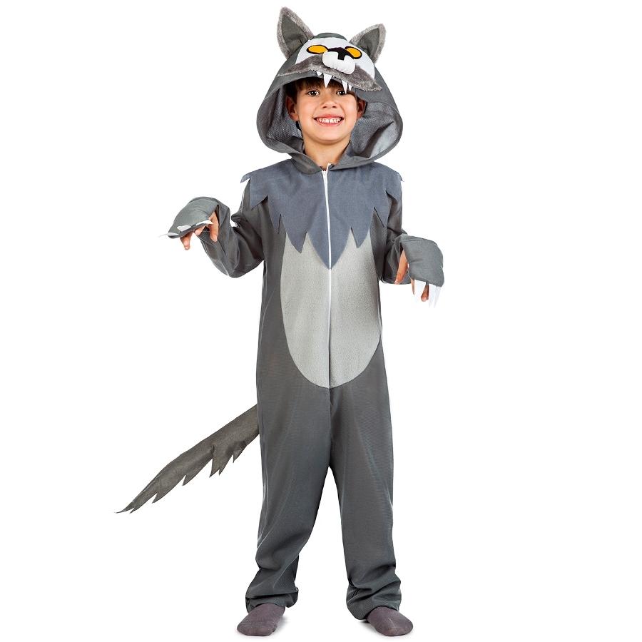Fato de lobo cinzento infantil com capuz, luvas e cauda