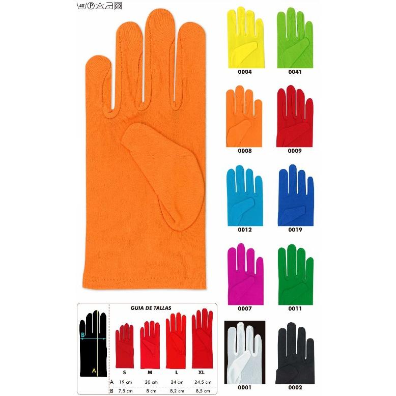 Luvas coloridas em tecido com várias opções de tamanhos e cores.