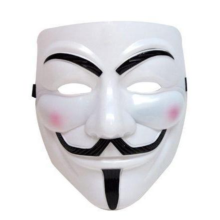 Máscara Guy Fawkes branca com detalhes pretos e bochechas rosadas