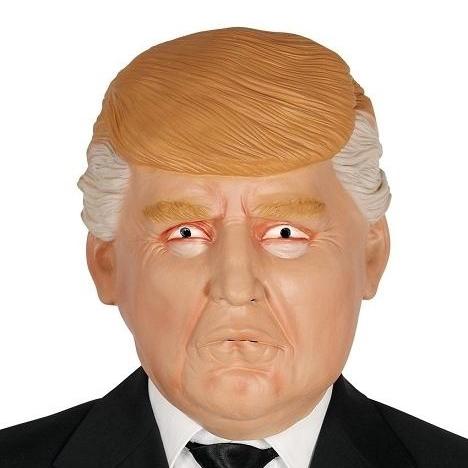 Máscara realista de rosto humano com cabelo castanho alaranjado e fato preto