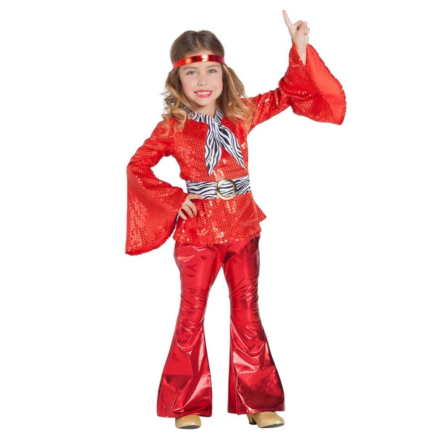 Fato de criança vermelho e branco com brilhos e padrão de riscas, completo com faixa na cabeça e cinto