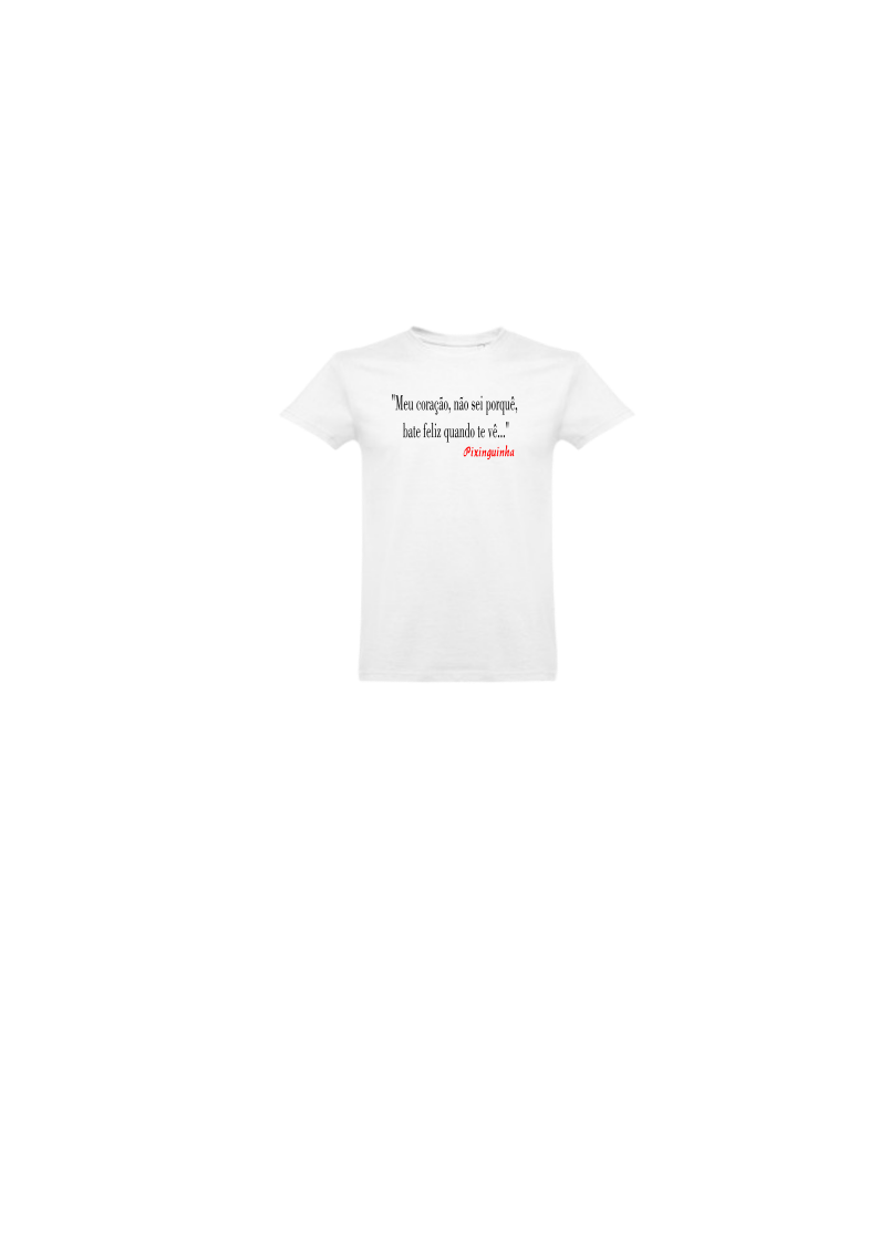 T-shirt branca com texto preto e vermelho
