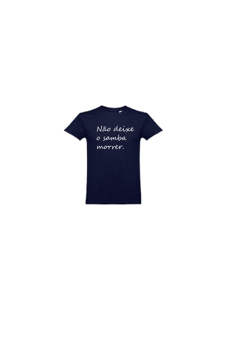 T-shirt azul escura com texto branco Não deixe o samba morrer