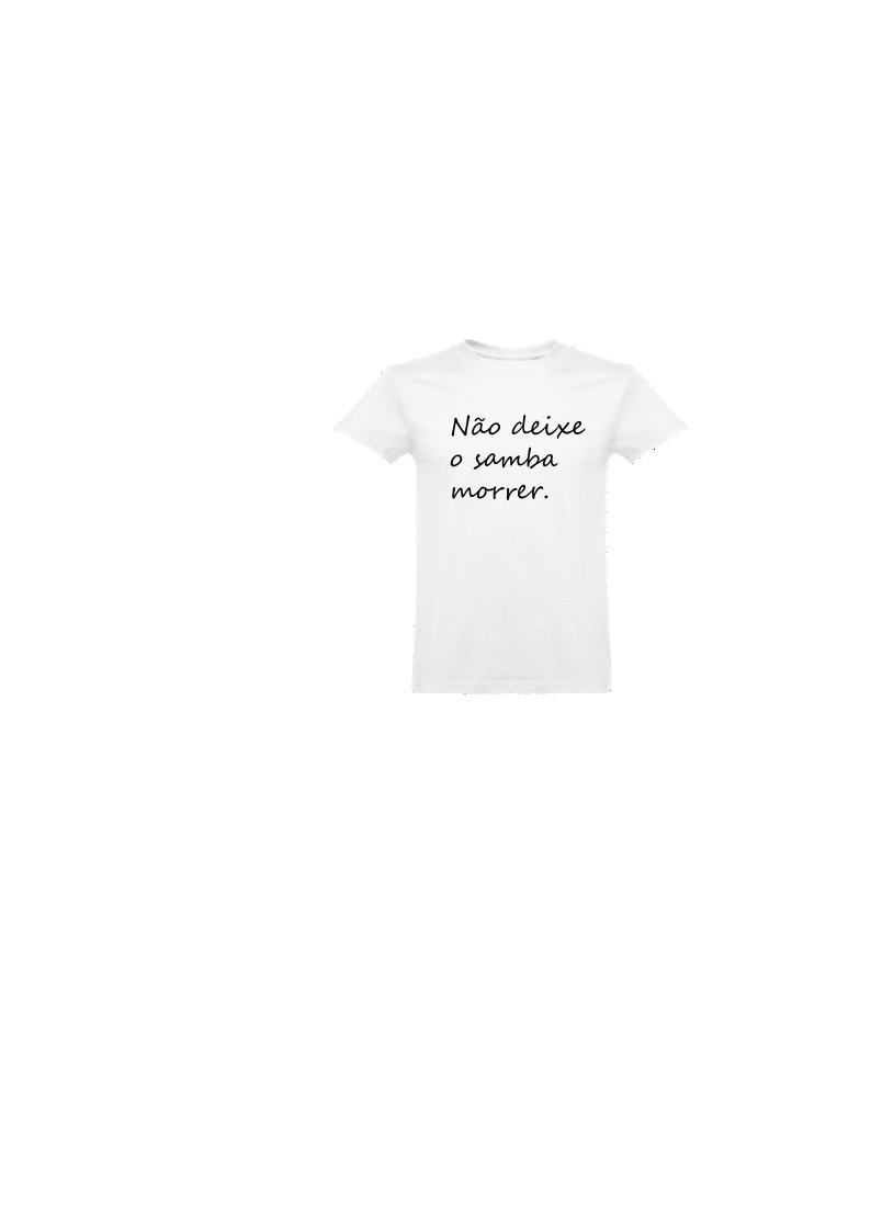 T-shirt branca com texto preto Não deixe o samba morrer